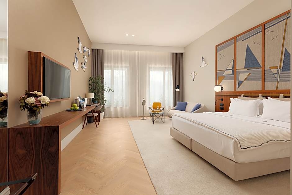 Boasting a private entrance, this air-conditioned apartment includes 1 living room, 1 separate bedroom and 1 bathroom with a walk-in shower and a bath. In the fully equipped kitchen, guests will find a stovetop, a refrigerator, kitchenware and an oven. The spacious apartment offers a flat-screen TV with cable channels, a washing machine, soundproof walls, a mini-bar as well as sea views. The unit has 2 beds.